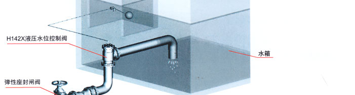 H142X液压水位控制阀,是一种自动控制水箱、水塔液面高度的水力控制阀。当水面下降超过预设值时,浮球阀打开,活塞上腔室压力降低,活塞上下形成压差,在此压差作用下阀瓣打开进行供水作业;当水位上升到预设高度时,浮球阀关闭,活塞上腔室压力不断增大致使阀瓣关闭停止供水。如此往复自动控制液面在设定高度,实现自动供水功能。